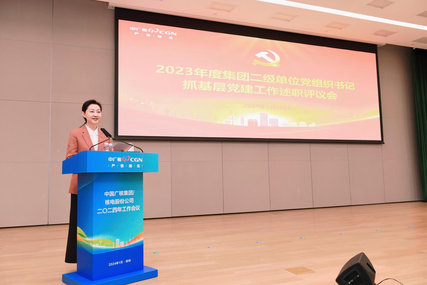 為(wei)深(shen)入(ru)學(xue)習(xi)貫(guan)徹(che)習(xi)近(jin)平(ping)新(xin)時(shi)代(dai)中(zhong)國(guo)特(te)色(se)社(she)會(hui)主(zhu)義(yi)思(si)想(xiang)和(he)黨(dang)的(de)二(er)十(shi)大(da)精(jing)神(shen),持(chi)續(xu)鞏(gong)固(gu)深(shen)化(hua)落(luo)實(shi)習(xi)近(jin)平(ping)總(zong)書(shu)記(ji)全(quan)國(guo)國(guo)有(you)企(qi)業(ye)黨(dang)的(de)建(jian)設(she)工(gong)作(zuo)會(hui)議(yi)重(zhong)要(yao)講(jiang)話(hua)精(jing)神(shen)成(cheng)果(guo),壓(ya)緊(jin)壓(ya)實(shi)黨(dang)組(zu)織(zhi)和(he)黨(dang)組(zu)織(zhi)書(shu)記(ji)管(guan)黨(dang)治(zhi)黨(dang)政(zheng)治(zhi)責(ze)任(ren),以(yi)高(gao)質(zhi)量(liang)黨(dang)建(jian)引(yin)領(ling)保(bao)障(zhang)集(ji)團(tuan)高(gao)質(zhi)量(liang)發(fa)展(zhan),1月18日,中國廣核集團有限公司黨委在深圳中廣核大廈召開2023年度集團二級單位黨委書記抓基層黨建工作述職評議會。寧德公司、紅沿河公司、惠州公司、陸豐公司、招遠公司、環保產業公司六家單位黨委負責同誌進行現場述職。集團公司黨委書記、董事長楊長利點評並作總結講話。