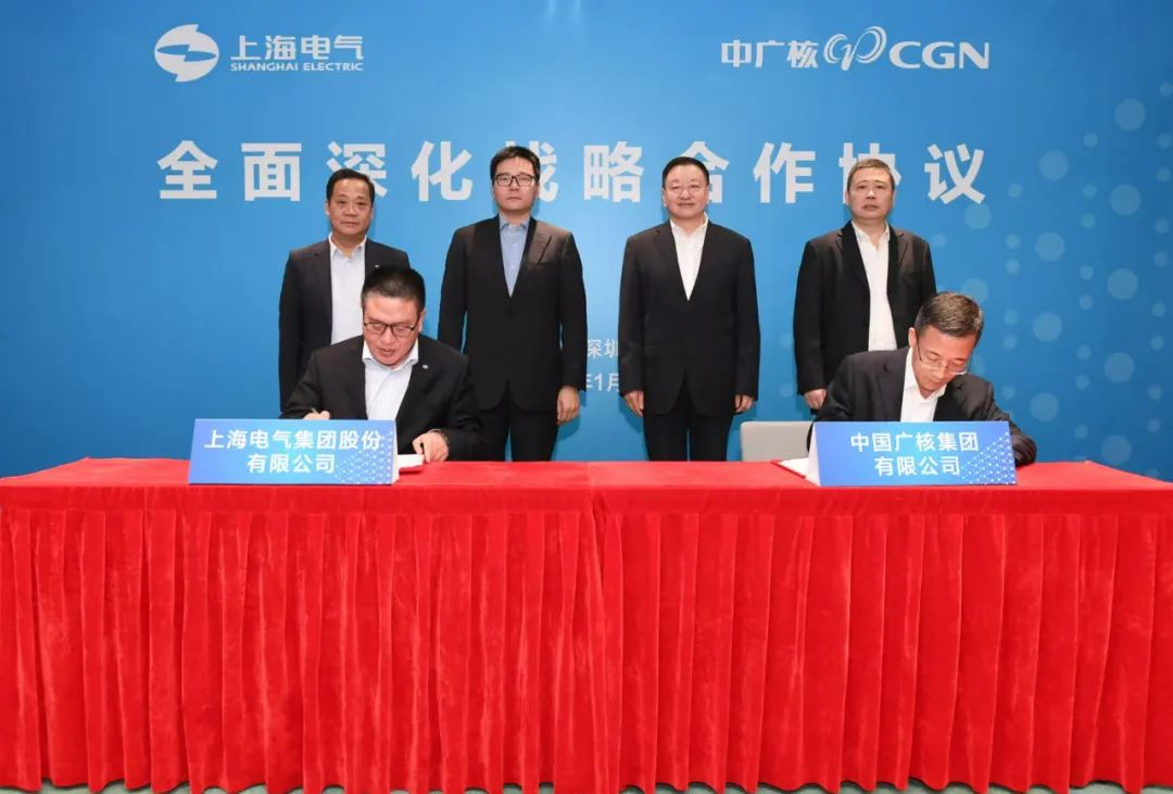 1月15日,中國廣核集團有限公司黨委書記、董事長楊長利在深圳中廣核大廈會見上海電氣集團股份有限公司黨委書記、董事長吳磊一行,就鞏固深化合作進行深入探討交流,並共同見證雙方簽署全麵深化戰略合作協議。上海電氣黨委副書記、總裁劉平,集團公司黨委常委、副總經理郭利民參加活動。