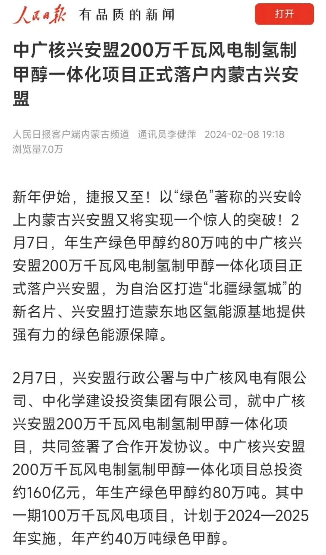 興安盟風能資源豐富,這是繼國內在運最大陸上風電基地——中廣核興安盟300萬千瓦風電項目實現全容量並網後,中廣核再次與興安盟圍繞清潔能源領域開展深層次合作。