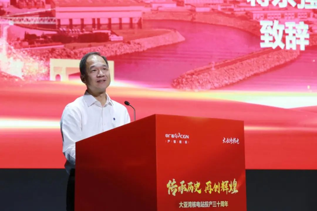 集團公司原黨組書記、董事長昝雲龍在致辭中回顧了當年老一輩核電人和眾多國內外專家從五湖四海彙聚到深圳,曆經千辛萬苦、千言萬語、千qian方fang百bai計ji,最zui終zhong成cheng功gong建jian設she大da亞ya灣wan核he電dian站zhan的de光guang輝hui曆li程cheng。他ta們men以yi高gao度du的de責ze任ren感gan和he專zhuan業ye精jing神shen,為wei核he電dian站zhan的de高gao標biao準zhun建jian設she投tou入ru了le巨ju大da心xin血xue,也ye為wei大da亞ya灣wan核he電dian站zhan30年nian來lai的de安an全quan穩wen定ding運yun行xing奠dian定ding了le堅jian實shi基ji礎chu。同tong時shi,昝zan雲yun龍long寄ji語yu核he電dian從cong業ye者zhe,既ji要yao傳chuan承cheng前qian人ren的de寶bao貴gui經jing驗yan,也ye要yao發fa揮hui自zi己ji的de優you勢shi和he創chuang新xin精jing神shen,做zuo到dao“青出於藍而勝於藍”,為我國核電事業和國家“碳達峰、碳中和”戰略達成作出新的貢獻。