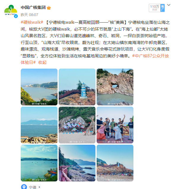 8·7到來之際,作為核電工業旅遊的預熱,中廣核還組織開展寧德核電“walk一夏”大V采風活動,共邀請了微博科普、生態環境、鄉村振興、旅遊、美食、時尚生活垂類領域6位頭部大V,圍繞“核電基地遊”“核電周邊遊”兩大主題,打卡了寧德核電基地88米觀景平台、全範圍模擬機、生態白茶園,及周邊金牌旅遊村漁井村、全國小康建設明星村柏洋村、太姥山景區、牛郎崗景區等地,全方位感受核旅硬核工業之美、“核”諧人文之美、“核”美生態畫卷。微博主話題#硬核walk# 截至目前,話題閱讀量7207.2萬,互動討論量達5.7萬,登上福建熱搜榜第三位。