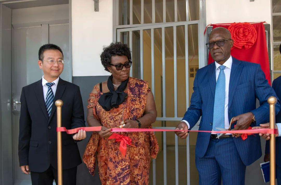 ▲2024年10月4日,在納米比亞北部奧漢圭納省拉紮盧斯豪菲庫聯合學校,納教育、文化和藝術部部長Ester Anna Nghipondoka(中)、納礦能部部長Tom Alweendo(右)、斯科公司總經理邱斌(左)為該校首個計算機房剪彩