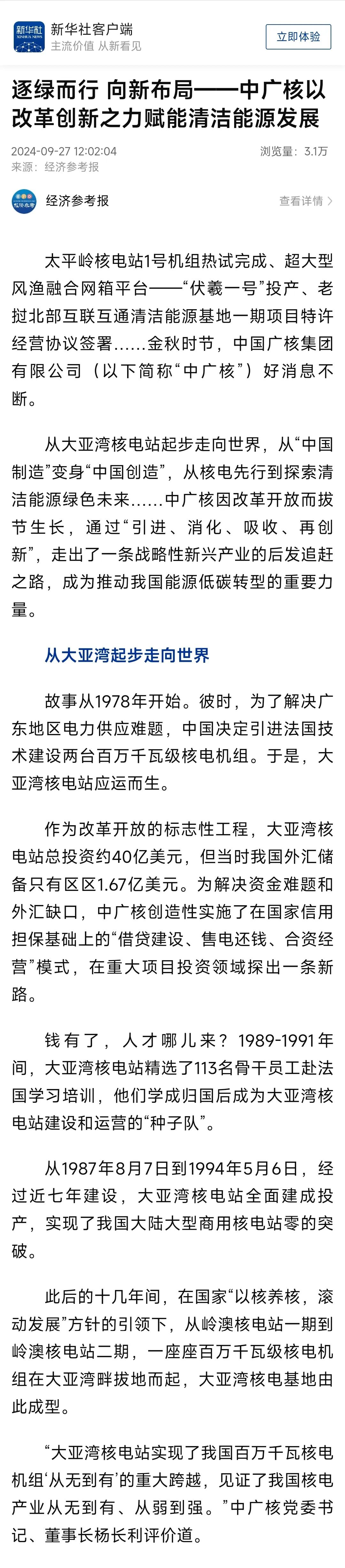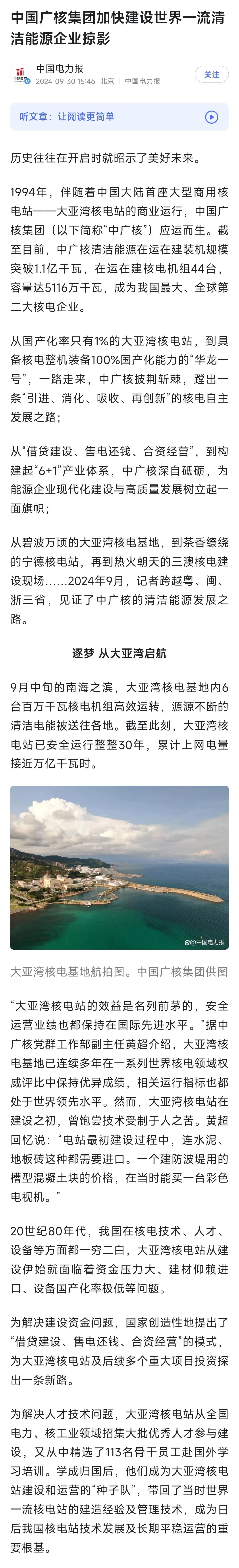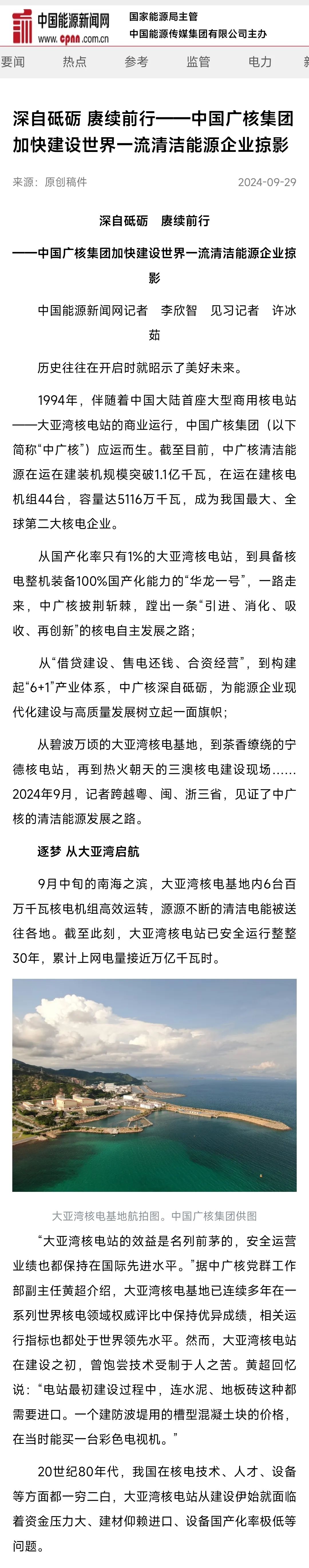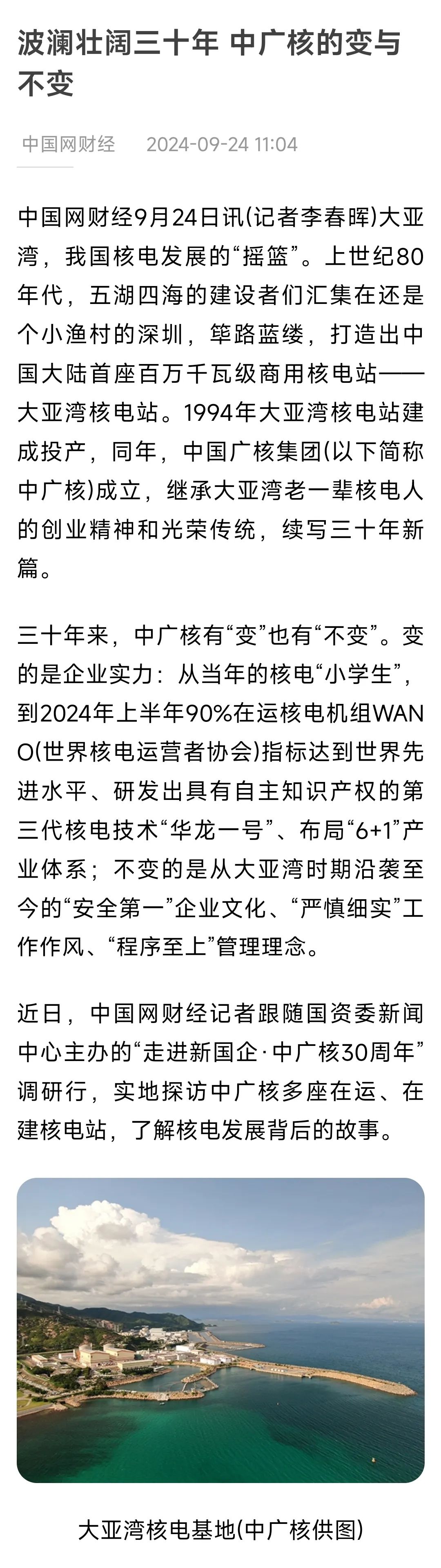 聚焦報道了中廣核從大亞灣核電站起步