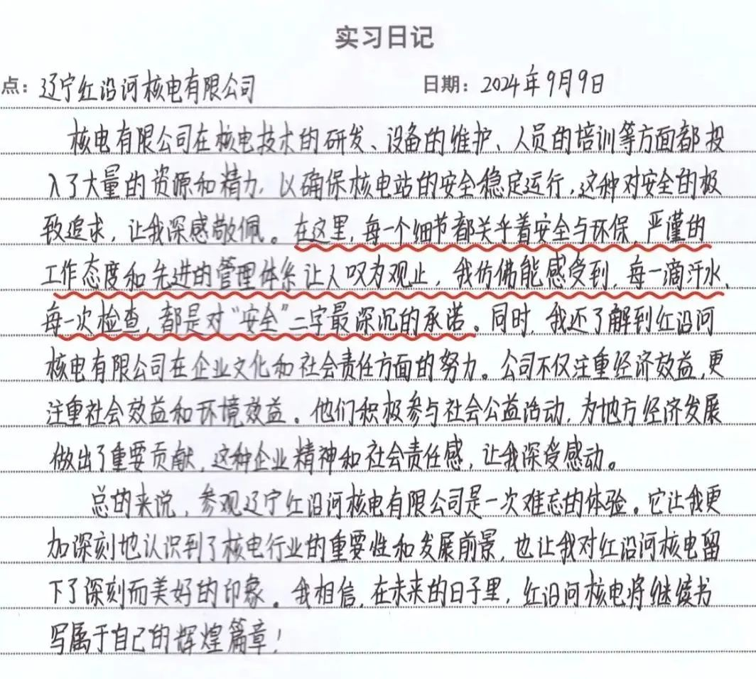 9月9日,大連理工大學船舶學院110餘名學生來到紅沿河核電基地,開展為期一天的“同享清潔能源,共建美麗中國”主題研學活動。學生們在核電科普大講堂聆聽講座,了解核電發展曆史和基本原理;在模擬機教室參觀全範圍模擬機,體會核安全文化的嚴謹性;在花蹊遠眺核電機組,欣賞渤海灣日落晚霞;在文瀾閣感受讀書文化並寄出明信片;在馬拉鬆長廊了解全國首個核電馬拉鬆背後故事,感受核電人精神。隨後,學生們以日記形式記錄所見所聞,分享研學感受。