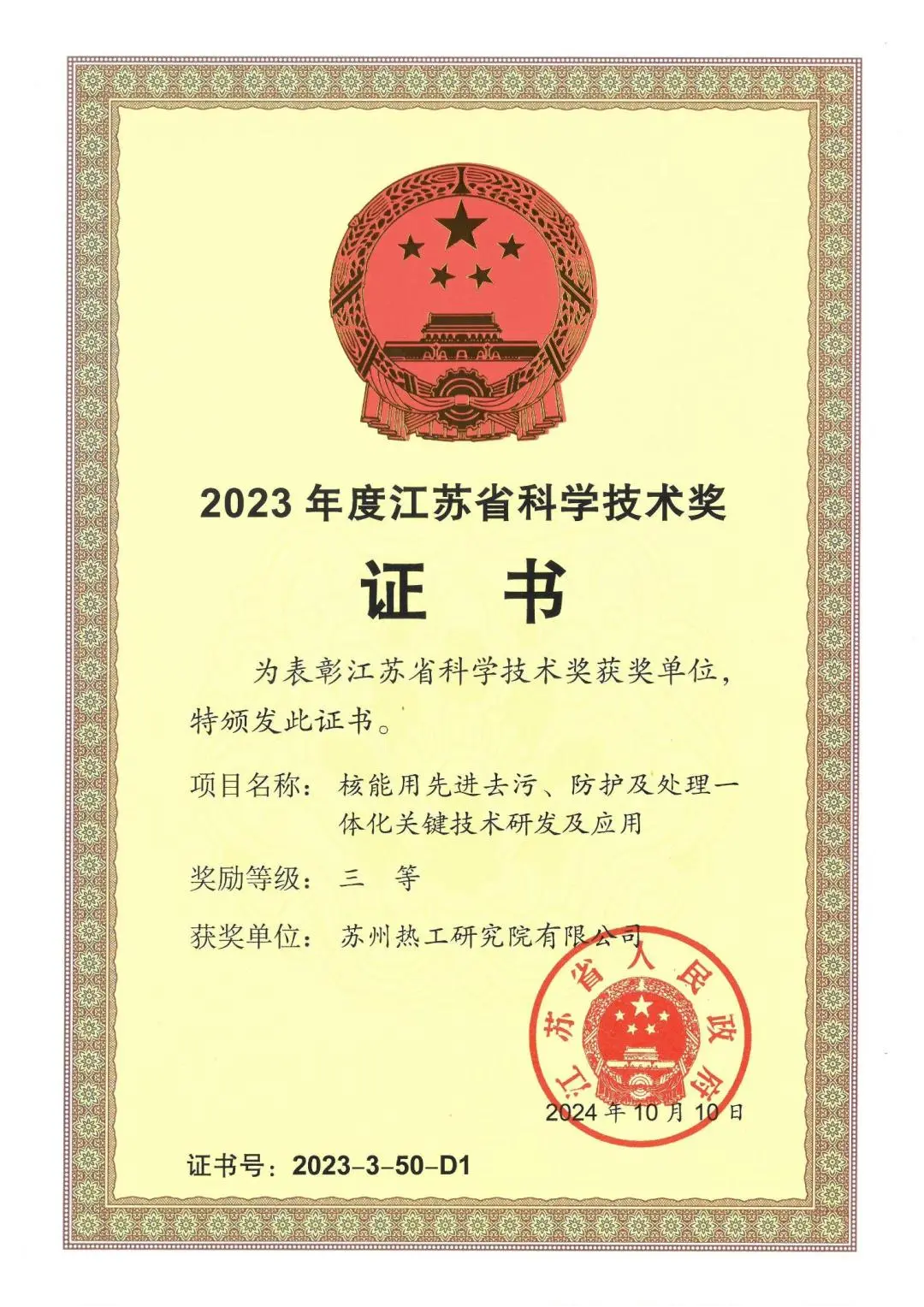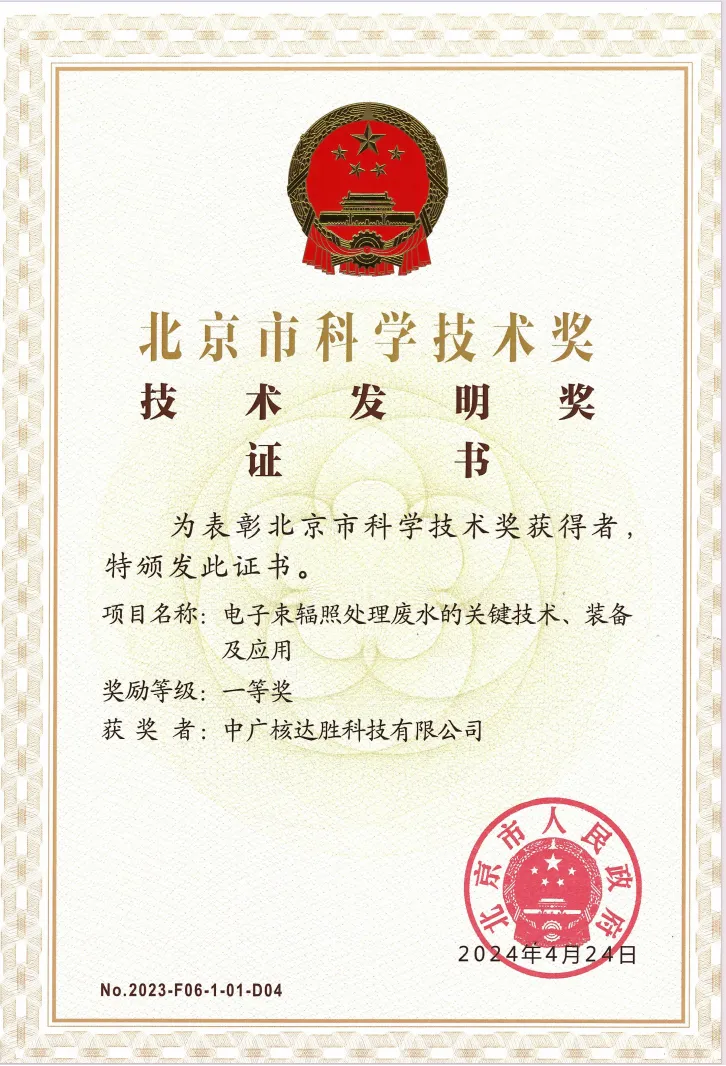 近期,中廣核連續收獲科學技術領域獎項!在11月19日召開的北京市科技大會暨科學技術獎勵大會上,由清華大學提名,中廣核技下屬達勝加速器技術有限公司、達勝科技有限公司參與完成的“電子束輻照處理廢水的關鍵技術、裝備及應用”項目斬獲北京市科學技術獎技術發明獎一等獎。此外,從蘇州市科技局也傳來喜訊,蘇州熱工研究院有限公司牽頭完成的“核能用先進去汙、防護及處理一體化關鍵技術研發及應用”項目榮獲江蘇省科學技術獎三等獎。
