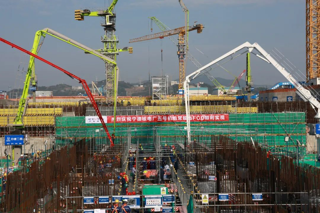12月5日8時整,中廣核福建寧德核電項目二期工程5號機組常規島汽輪機筏基澆築第一罐混凝土(FCD),標誌著常規島土建工程進入全麵施工階段。