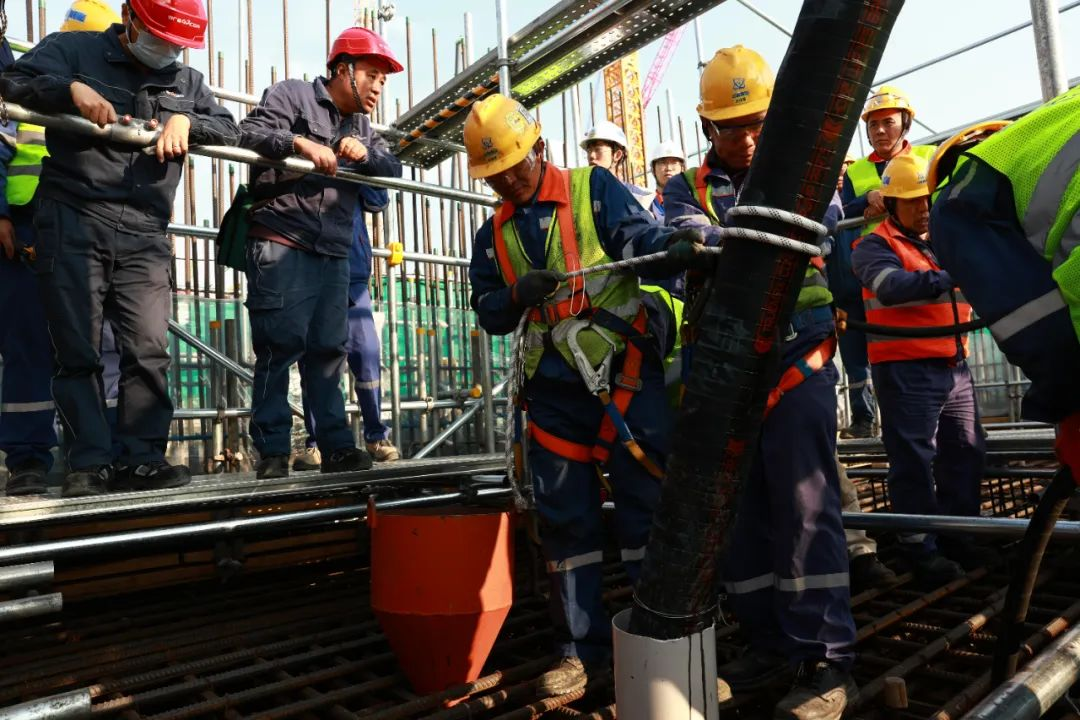 此次澆築采用斜麵分層澆築方法,澆築方量約4100立方米,預計澆築時長約40小時,是常規島筏基中澆築麵積最大的一塊。