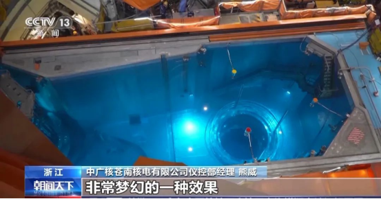 鏡頭繼續深入來到了核島中央,水池已經完成注水,正在進行測試,未來,核反應堆就將安裝在這個水池中。