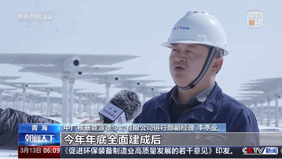 中廣核新能源德令哈有限公司運行部副經理 李亭業:今年年底全麵建成後,我們每年可為電網輸送18億度綠電,相當於節約標煤約55萬噸、減排二氧化碳130萬噸,