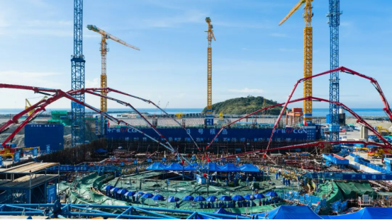 上午8時18分,在所有參建代表的見證下,高立剛宣布太平嶺核電項目3號機組反應堆廠房第一罐混凝土啟動澆築,中廣核華龍融合批量化建設運營旗艦項目再添新動能。