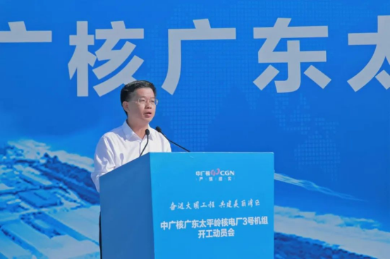 受劉吉書記委托,黎炳盛代表惠州市委、市政府和惠東縣委、縣政府,對太平嶺核電項目3號機組全麵開工表示祝賀。他表示,太平嶺核電是惠州市打造“風光核氣儲”多能互補清潔能源產業集群的重要支撐,也是落實“碳達峰碳中和”國家戰略、推動清潔能源高質量發展的生力軍。惠州市將深入貫徹黨中央決策部署,認真落實省委、省政府“1310”具體部署,著力加快構建綠色低碳產業體係,秉承開放合作、互利共贏的發展理念,一如既往支持中廣核在惠各項事業的發展,持續為太平嶺核電項目建設保駕護航,推動“早開工、早投產、早見效”。希望惠州核電和各參建單位高質量推進項目建設,確保項目安全、優質、高效投產。希望中廣核繼續深耕惠州,共同為惠州市打造“粵港澳大灣區清潔能源中心”賦能添力。