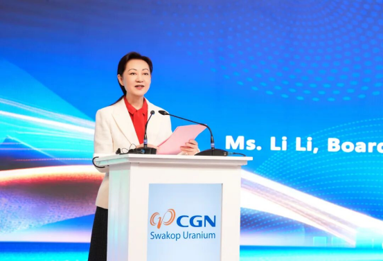 李曆在致辭中表示,中廣核自2012年開始,在納米比亞投資建設運營全球第三大鈾礦——湖山鈾礦,目前已成為納米比亞“國家名片”“一帶一路”標誌性工程和中納兩國互利共贏合作的典範項目。在見證、參與、推動中納兩國偉大友誼的過程中,中廣核始終心懷“三個美好願望”:一是將湖山鈾礦建設成為世界一流“綠色礦山”,二是將湖山鈾礦打造成為“共建共享”典範,三是將湖山鈾礦打造成為“文化融合”標杆。她強調,未來中廣核將始終以“發展清潔能源,造福人類社會”為使命,深化中納能源合作,讓湖山項目持續煥發活力,讓清潔能源之光照進更多家庭,為譜寫中納友好新篇章、構建中非命運共同體貢獻更大力量,中廣核願與全球同行攜手並進,共同開創清潔能源發展的美好未來。