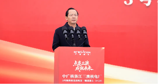 李寧代表溫州市委、市政府,對3號機組主體工程開工建設表示祝賀。他指出,3號機組核島FCD標誌著三澳核電二期項目建設邁入提速新階段,對溫州加快打造全省新型能源體係先行示範區、全國新能源產能中心和應用示範城市具有重要意義,溫州市委、市政府將始終秉持“靠前服務、精準保障”理念,為項目保駕護航,希望蒼南核電高標準、嚴要求做好工程安全、質量和進度管控,將項目打造成為經得起曆史和實踐檢驗的精品工程、陽光工程、央地合作示範工程,為國家新型能源體係建設貢獻溫州力量。