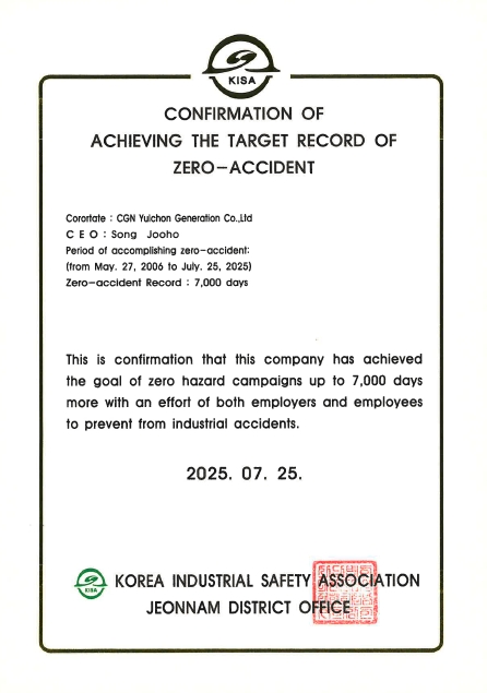在存量資產優化領域,能源國際亦以品質為抓手交出亮眼答卷。2025年6月17日,曆時三個月的栗村電廠一期延壽改造大修圓滿收官,這台運行20餘年的機組一次通過韓國電力安全公社法定檢查並順利並網,重獲十年穩定運行能力。承擔此次大修任務的栗村電廠維修部,在2024年被評為“中廣核安質環標杆班組”,其將“嚴慎細實”工作作風融入工作全程,以32人團隊統籌47家分包商及近千名施工人員,高效完成420項檢修任務,實現“零異常”目標。同年7月25日,栗村電廠創下連續安全運行7000天的紀錄,位居韓國電力行業前列,獲頒“7000天無事故記錄證書”,項目人員以堅守與專業詮釋了質量至上理念,也為“創效”目標達成築牢了可靠根基。