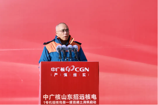 龐鬆濤代表集團公司對項目建設全麵啟動表示祝賀,對國家相關部委、山東省各級黨委和政府給予的指導支持,以及合作夥伴、一線建設者的辛勤付出表示感謝。他指出,作為中廣核第十個核電基地,招遠核電項目的高質量推進意義深遠,不僅為集團“十四五”目標實現提供了有力支撐,為“十五五”開篇布局築牢根基,更為山東加快構建新型能源體係注入強勁動力,為保障國家能源安全、實現“雙碳”目標貢獻中廣核力量。他對全體建設團隊提出三點要求:一要提高政治站位,深學篤行習近平總書記對核電行業和中廣核的重要指示批示精神,堅守“安全第一、質量第一、追求卓越”原(yuan)則(ze),嚴(yan)守(shou)安(an)全(quan)生(sheng)產(chan)紅(hong)線(xian),確(que)保(bao)核(he)安(an)全(quan)絕(jue)無(wu)一(yi)失(shi)。二(er)要(yao)聚(ju)焦(jiao)關(guan)鍵(jian)技(ji)術(shu)攻(gong)關(guan)與(yu)數(shu)字(zi)化(hua)轉(zhuan)型(xing),創(chuang)新(xin)核(he)能(neng)綜(zong)合(he)利(li)用(yong)模(mo)式(shi),形(xing)成(cheng)可(ke)複(fu)製(zhi)推(tui)廣(guang)的(de)技(ji)術(shu)和(he)管(guan)理(li)經(jing)驗(yan),持(chi)續(xu)迭(die)代(dai)提(ti)升(sheng)建(jian)設(she)水(shui)平(ping)。三(san)是(shi)要(yao)立(li)足(zu)“高標準打造百年精品工程”定位,深度融入地方能源規劃,積極培育核風光儲一體化清潔能源產業集群與新質生產力,助力山東省能源綠色低碳轉型。