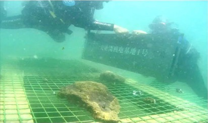 ▲“水哥”王昱珩潛入海底為“大亞灣核電基地珊瑚保育區”掛牌