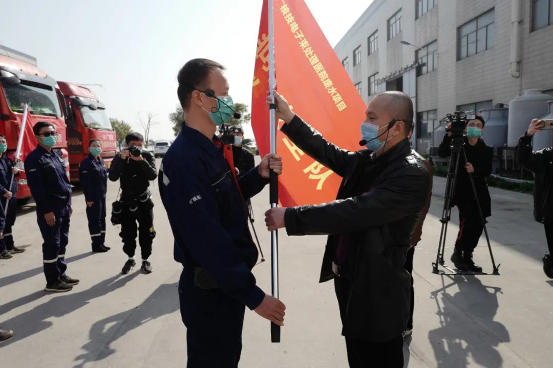 3月19日中午,經過近40小時的長途跋涉之後,7輛裝載著馳援湖北醫療廢水處理核心設備的貨車,緩緩駛入湖北省十堰市新型冠狀病毒患者救治定點醫院西苑醫院。