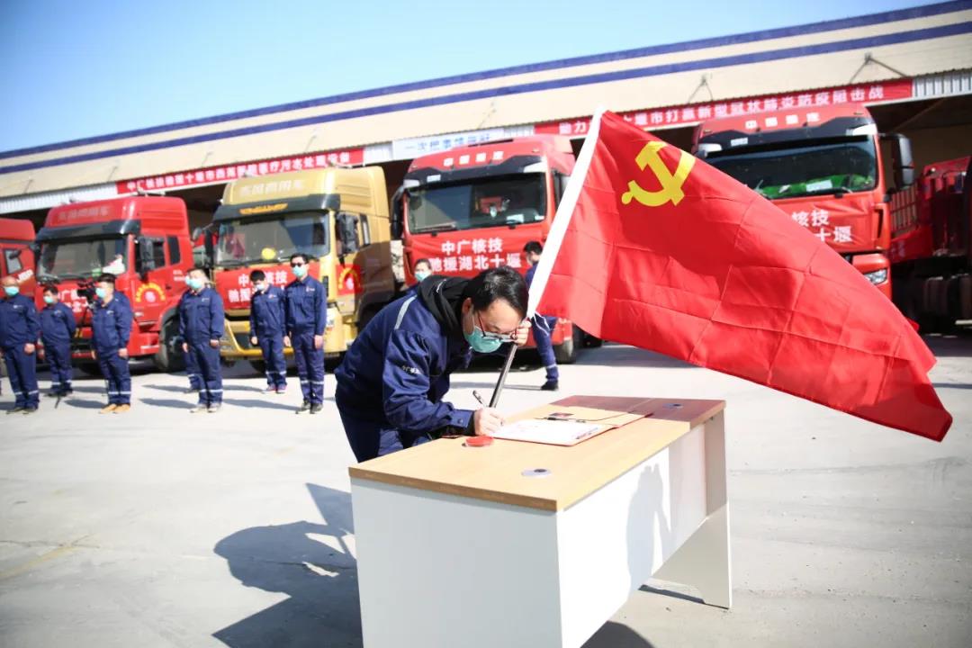 兩天後,7輛載重卡車滿載著中廣核人的責任和擔當,駛向湖北十堰。